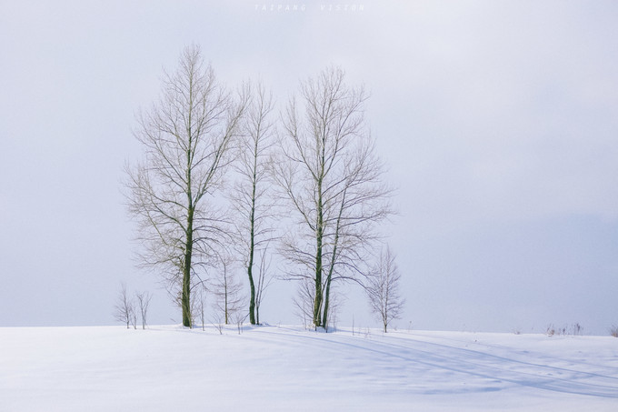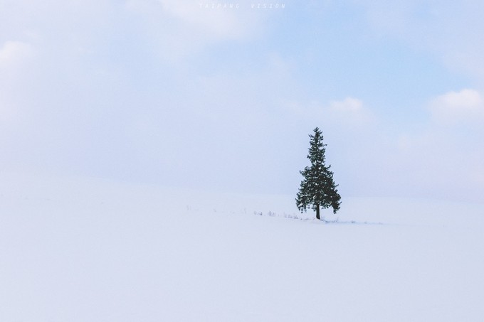 “从明亮天际到暮色将晚,仿佛走过一个世纪的漫长”用偶然看到的这句话来描述此时的美瑛再贴切不过。白色天际间,就像只有我一人,世界变得异常安静。