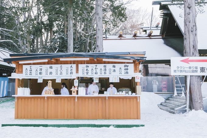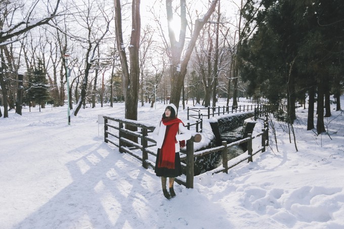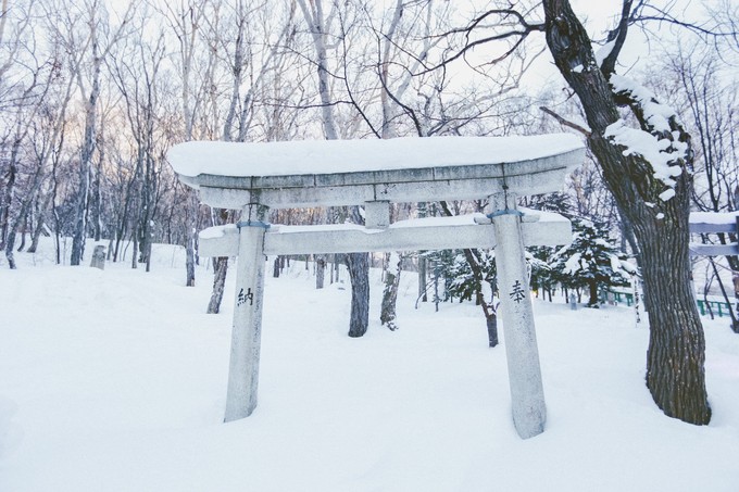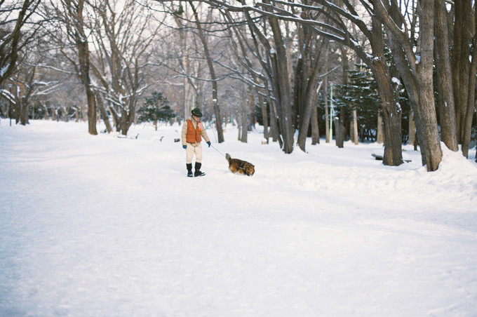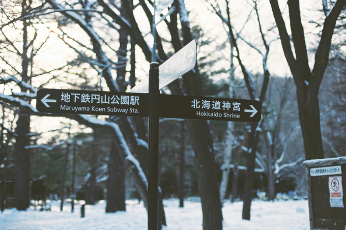 除了从神宫正门选择出入,如果要乘坐地铁,导航会引导穿过圆山公园的古老的参天古木林,这里是路途中我非常喜欢的雪路,本来供人休息的草坪和椅子上到处被覆盖了厚厚的白雪,有不少市民带着卡哇伊的小狗出来散步,这样一个元气的清晨会让人不由自主受到感染。