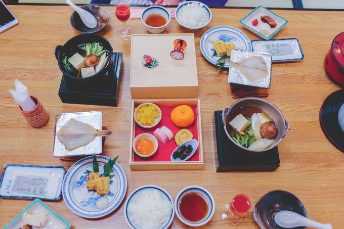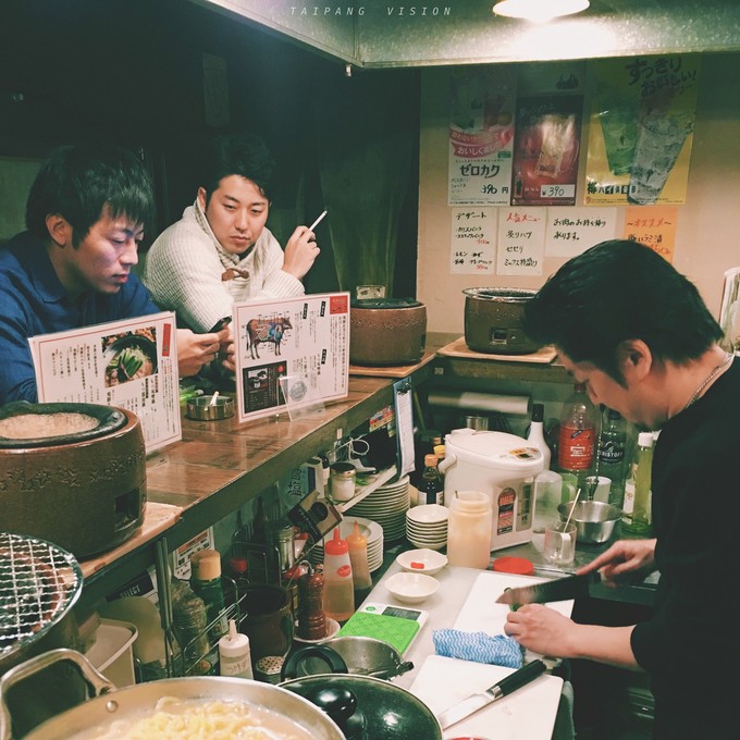 安顿好之后搜索“食べログ”锁定几家目的地之后便外出觅食。过年的高山街道也是冷冷清清,好几家店都是早早打烊的状态,最后选择了推荐的一家飞弹牛肉烤肉店。小小的店铺,却坐满了人,虽然老板不会英语,但是非常热情地尝试与我们交流,手舞足蹈的比划,份外热情。照着招牌菜的推荐点了飞弹烤牛肉和寿喜锅,再配上一杯梅子酒,开年的第一餐大满足。