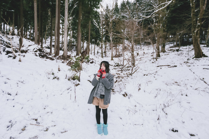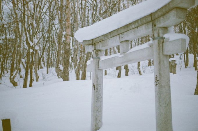 天狗山顶有一个天狗山神社,有些地方的雪已经可以淹没整个腿部;只能沿着前面人已有的脚印小心地往前探索。