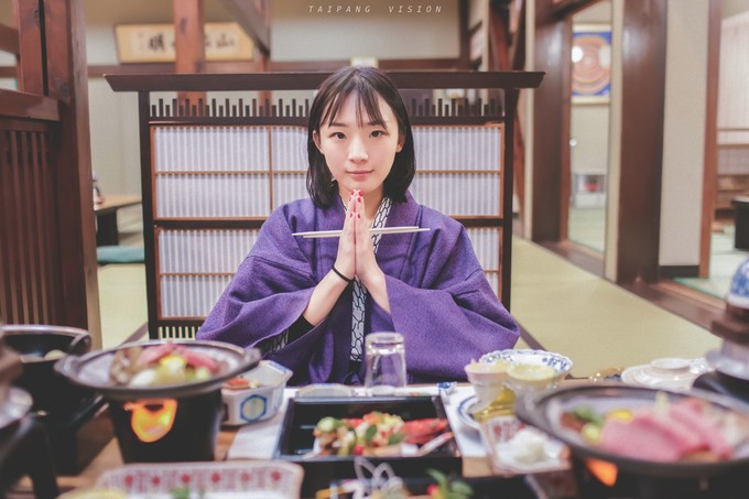 既然不能观看点灯,我们选择吃完午饭便坐车回到高山,转车前往佳留萱温泉山庄,傍晚时分到达这座山林中的独栋别墅山庄。被一位穿着传统和服的女性服务员领到房间,举手投足之间透着优雅的韵味,为我们耐心地讲解,并送来合身的浴袍供我们泡汤时使用。