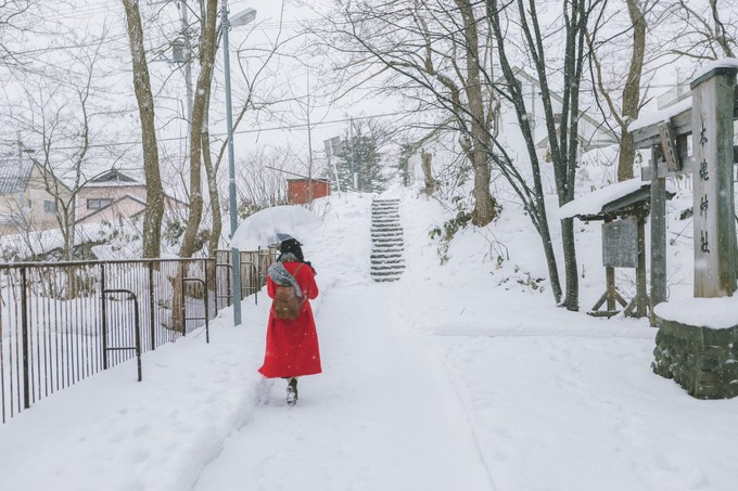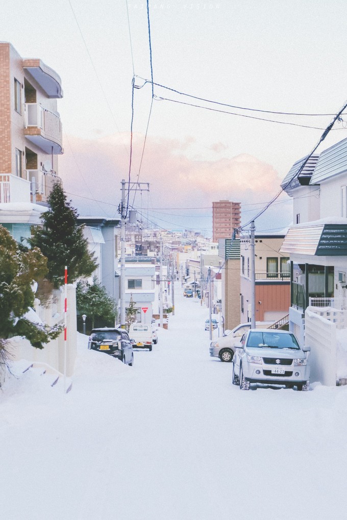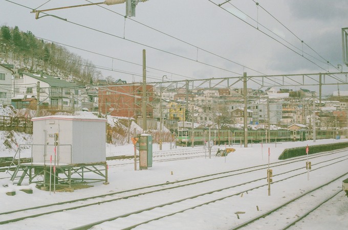 从音乐盒博物馆出来之后,发现外面下起了大雪,尝试往山上走步行至船见坂,确定目的地后便抛开地图,心中有一个大致的方向,避开大路,专挑一些游客罕至的一些巷道,偶遇了南小樽站附近的雪中铁路,兴奋地沿着铁路来回奔跑。