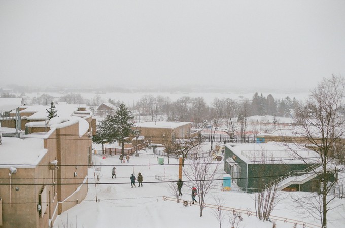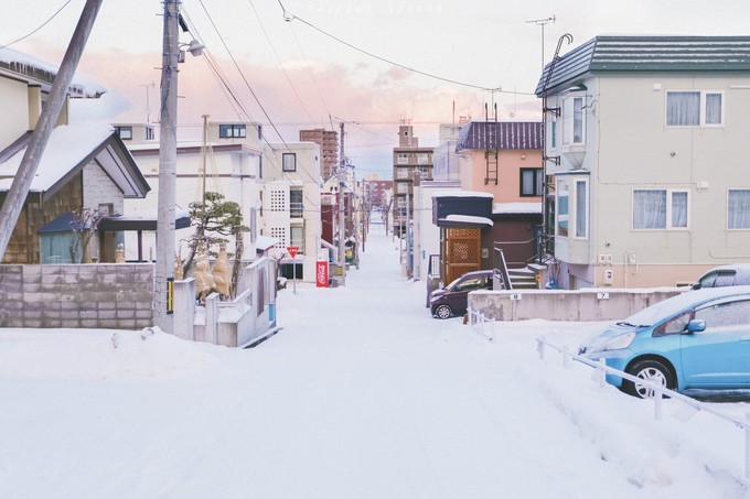 “一个村庄,密密的小房子群落被几条笔直的马路分割成一块一块的,在村庄的外围,就是干净的几乎不落脚印的雪地和连绵的玄色群山。”——摘自莫言《北海道走笔》