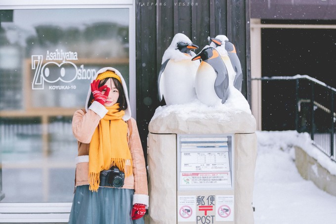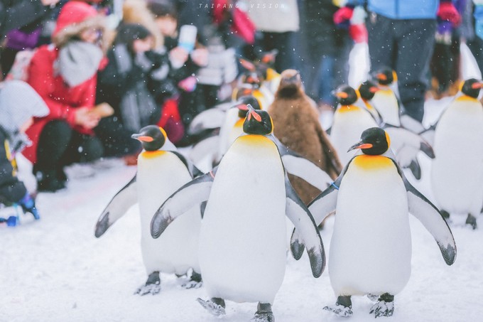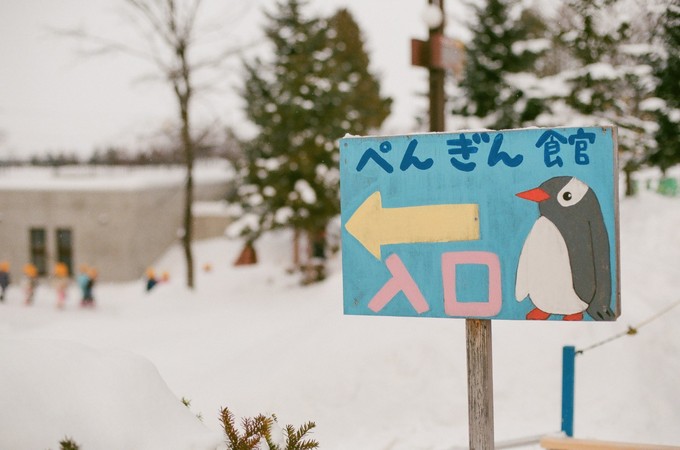 旭山,这个北海道以北的城市常年保持着降雪最多和气温最低的记录,我们刚到达的时候,身体很艰难地适应着骤降的温度和正在下着的鹅毛大雪。在JR车站外的公交车站乘往旭山动物园方向的公交车即可前往。十点半入园之后,便马上寻觅好拍照的地方,等着11点的园区王牌项目——企鹅漫步。