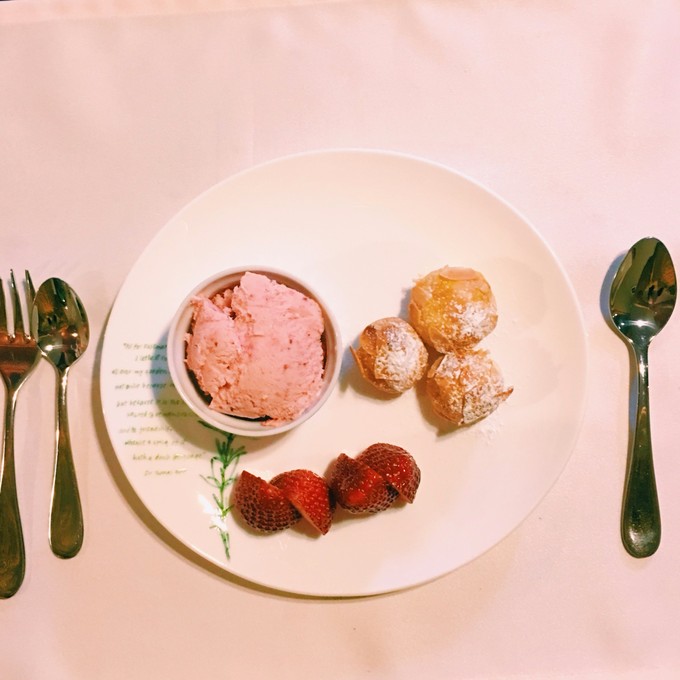 民宿的老板和老板娘是一对笑容可掬的恩爱夫妇,老板娘是国际饭店的主厨,而老板曾在国际公司工作,可以用英文自如地沟通。民宿的餐厅经过精心布置,暖黄的灯光,舒缓的音乐,开放式厨房,精致的法式料理,一切都那么雅致;老板在厨房可以观察到客户的用餐进度,不时出来收拾盘子并严谨地按照法餐的顺序端上一道道可口的料理,可以看出老板娘的用心。现在世人大多浮躁,能够像这样静下来心来为自己的爱好倾注心血,真是难能可贵。