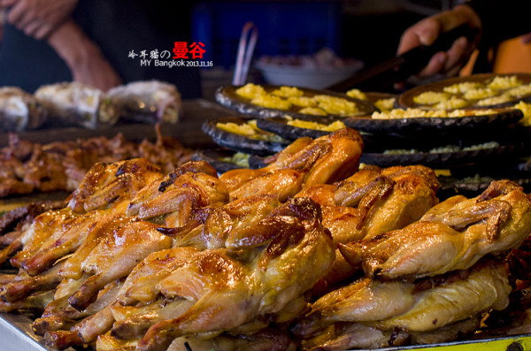 泰国的烤鸡真心好吃,随便一个路边摊的味道都可以比得上肯德基的奥二娘烤鸡的。