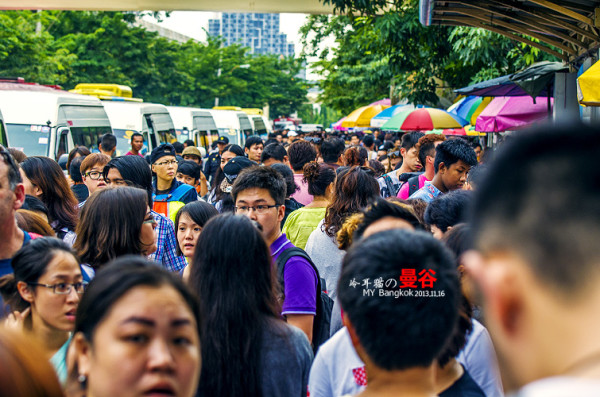 细雨中的曼谷,一切还是在有条不紊的运行着,从BTS下来,步行不远就有一个车站,专门卖各种短途的车票。如华欣,芭提雅,丹嫩萨垛,夜功府一类地方的MNI VAN的车票。MINI VAN是泰国一种很常见的交通方式,它是一种像小巴(跟国内金杯车差不多)一样的车,在曼谷一般都是TOYOTA。可以坐10多个人。票价很便宜。从曼谷到安帕瓦水上市场的票价是80B,约合16块人民币。大概有100公里。这个价格跟国内的车票比就很便宜了。