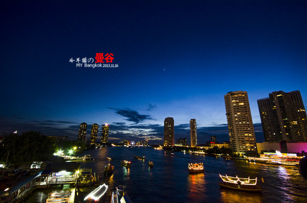 今天是泰国的水灯节,到了傍晚,把买的东西放回住处就急急忙忙的往湄南河赶,正好在太阳落山的时候赶到了湄南河的郑王大桥。桥上已经聚集了好多好多人在那儿了,赶紧找好空地架上脚架。记录下这湄南河美丽的晚霞