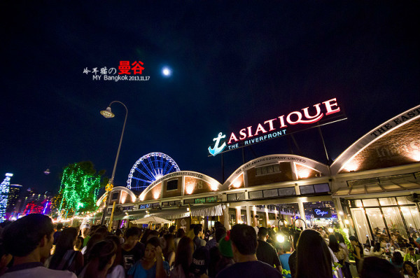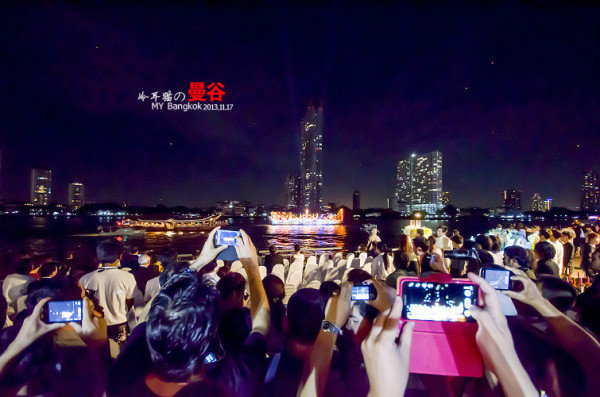 懵懵懂懂的随着人群挤上了船,终于从郑王大桥的码头搭到去ASIATIQUE的码头夜市,这里是水灯节的主会场,主要这里有一个很大型的表演。而且这里是看花船最好的地方,所以人群们都往这里聚集