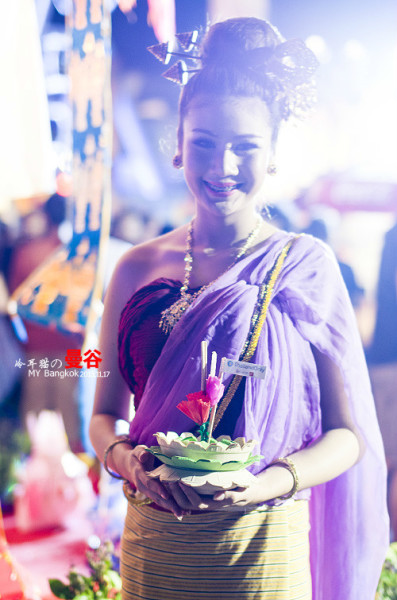 在泰国的传统节日中,最美丽的应该是“水灯节”(Loy Kra Thong)。如果说从4月份的“宋干节”,可以看出泰国人在“水战”中的疯狂,那么每年的11月份的“水灯节”,却充分体现着泰国青年男女旖旎的恋恋风情。因为每逢水灯节的夜晚,无论是城市或在乡镇,只要是频临河港或湖边的地方,水面上都会飘满水灯,闪亮着一片烛光,辉映着青年男女们双双的幸福靓影,而一片花香和轻快抑扬的“放水灯”歌声中,构成一个欢乐的水灯节之夜。[1]水灯节,是泰国民间最富有意义,且多含神话的节日,在每年之泰历十二月十五日夜晚间举行(公历11月)。在这雨季过后的这一时期,泰国正是河水高涨,月儿清辉的美好季节。按照泰国传统习俗,泰国人将在水灯节当天将亲手制作的水灯放入河流中,以寄托心中美好的愿望和祝福。