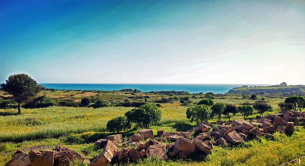 塞利农特的海边神庙,是促成我西西里之行的最大缘由。自从几年前见过一张照片后就对它一直念念不忘,等到真的见到时,心情难以言表。那天,阳光很好,略有微风,最完整的E神庙就矗立在考古公园入口不远处。考古公园坐落在海边悬崖上,是一片略有起伏的稀树的原野,其上开满了灰白、深紫和明黄的野花。