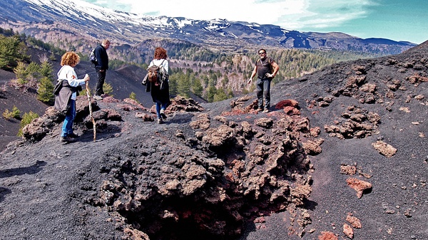 在我眼里,活火山等于不定时炸弹,如果我安家在活火山附近,一定终日惴惴不安。但埃特纳不同于维苏威之类的爆发型火山,通常情况下只是有些不定期的小规模喷发,并不会带来危害。诚然,历史上有过几次猛烈的喷发,有一次甚至摧毁了卡塔尼亚全城。但是它的好处——无与伦比的肥沃土壤、易于开采被用作建筑材料的火山岩、之前的硫磺和冰块开采业和如今的旅游业——却持续地给当地人带来更好的生活。甚至,人们在受不利卡塔尼亚的炎夏时,会跑到埃特纳的山腰上消暑。