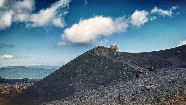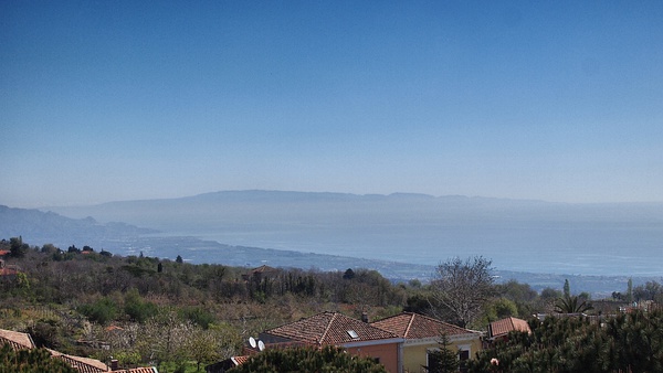 总之我生命中,很少有一天和在埃特纳火山上那天一样奇妙。太多的信息需要消化,太多的风景需要铭记,太多的事情需要思考,太多的情韵需要捕捉。在半山腰的一个观景平台,Fabio提示隔海相望的就是意大利本土、亚平宁半岛的Reggio di Carabria。只见对岸的群山的轮廓,在淡蓝色的水汽中模模糊糊、层层叠叠地显现出来,那么近又那么远,像一块未知的土地。不知为什么,在西西里时总感觉这里就是全部,不知不觉地忘记外面的世界。