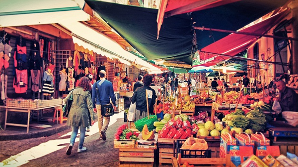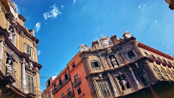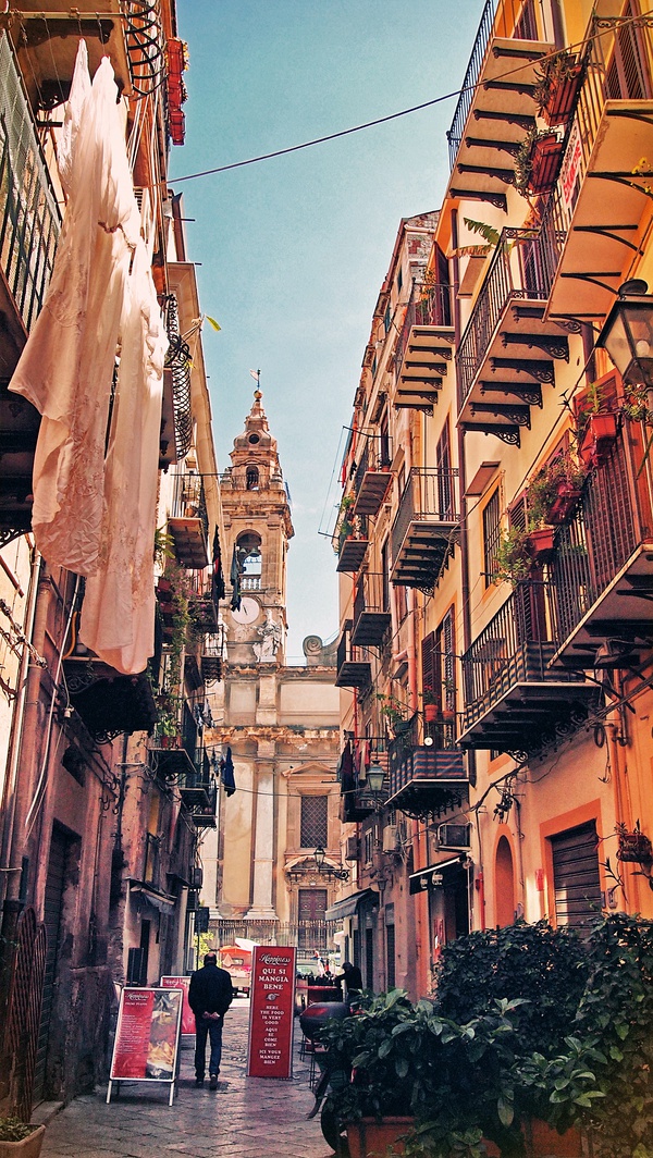 巴勒莫,巴勒莫——听上去像个中东城市,像《一千零一夜》里的故事舞台。疯狂,无秩序,杂糅,令人困惑,它是瑞士的一切特质的反面。旧城破烂不堪、把衣物晾在窗外的贫民区和优雅气派、布满时装店和高级餐厅的新城仅仅隔了几条街。各种风格的建筑并排出现令人晕头转向,仿佛在中东、西班牙和意大利之间来回跳跃。喧嚣吵闹的交通、沿街叫卖的小贩和遍地的游客。各种肤色的居民,各种口音的意大利语。忙碌的海港上同时停着高级游艇和渔船。看似破旧的街道却掩藏着华丽的宫阙,最好的餐馆往往就在随地倒脏水、腥味扑鼻的鱼店旁边。露天集市出售无比便宜无比新鲜的农产品(0.5欧元6个血橙!)和粗制滥造的日用品……但不论你喜欢不喜欢,这个城市有种鼓舞人心的活力。对我来说,就像一场华丽的冒险。