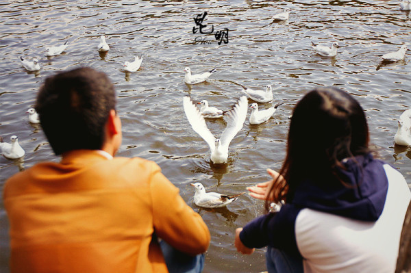 每年冬季都有大量红嘴鸥据说是从西伯利亚飞到昆明过冬,他们些许停在游船的顶部、些许抚掌在水中。倘若你拿着面包伸手出去,他自己会飞过来吃掉。你的朋友这时候能帮你抓拍到一张,就算表情狰狞,也是美的。