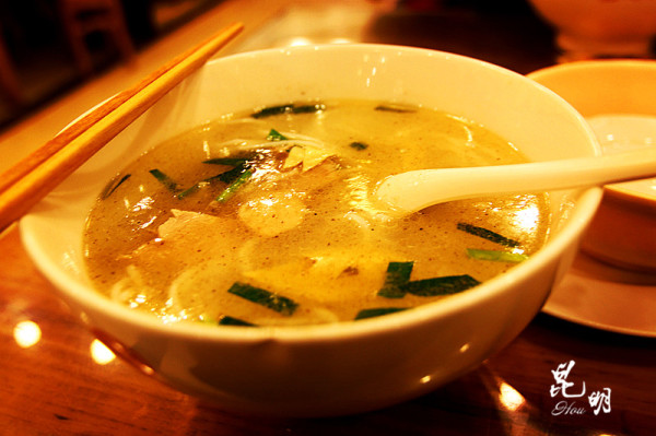 汽锅鸡。鸡肉炖得很软,软到你吃进去可以很轻易咬到骨子而且有一股煤气的味道