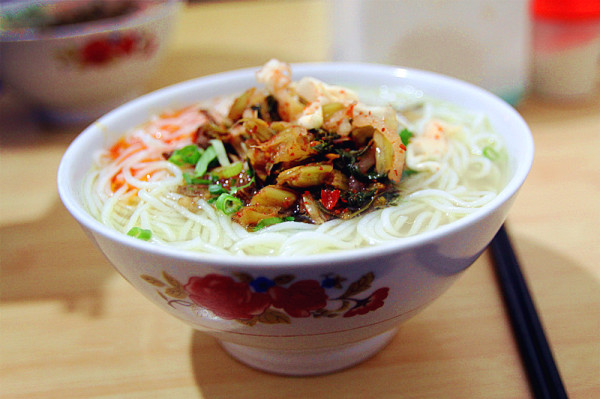 各种小菜倒进热腾腾的满是油光的汤里,小小的胡椒碎加重了整个汤的味道,烫的我的舌头红了好一会。 在火车站旁边吃的 价格不菲。 ↓