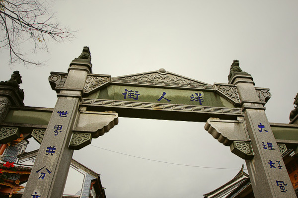 我们来到了木府门前,可是因为是晚上,我们完全没有认出来。