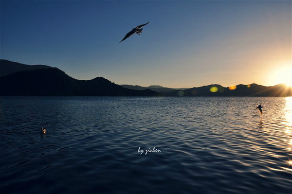 有蓝天。有阳光。有海鸥。有湖水。