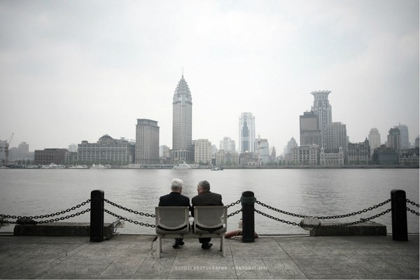 黄浦江畔,两位白发苍苍的好基友正坐在一起聊人生,一生能有一个一辈子的好基友,也算是件不错的事。