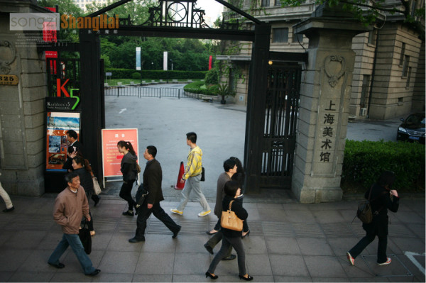 向左走,向右走,上海美术馆前,三三两两的路人。