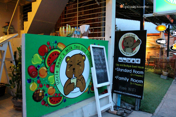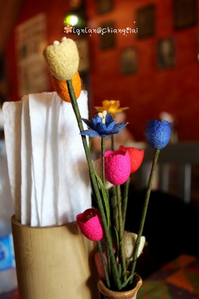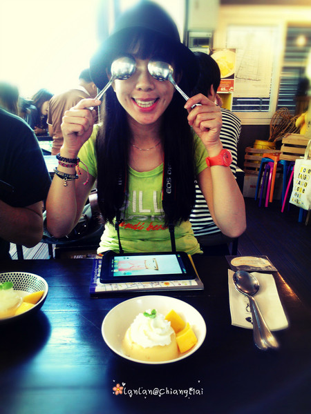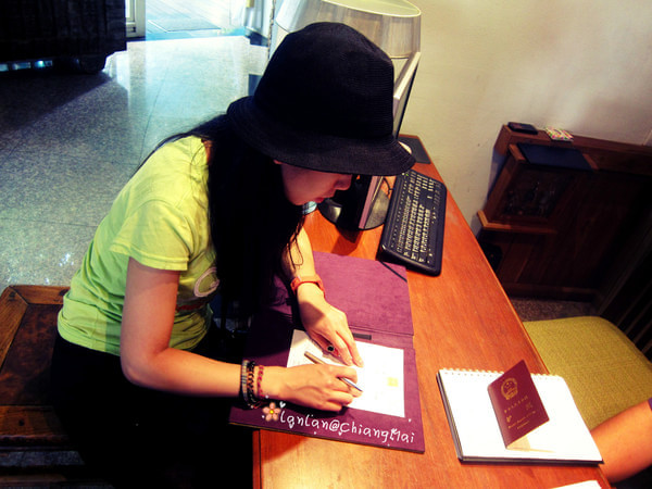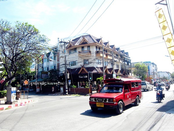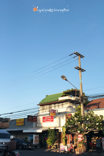 下午我们到清迈了,到的是清迈火车站附近,再自己打车到酒店,上了一辆坑爹的双条车,每人要收40B,以为离得远~其实离塔佩门非常近,20B就绰绰有余了···入住一家只有四间房的小民宿~,惬意~♥♫~