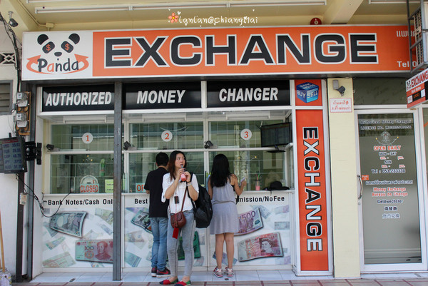 换泰铢,在塔佩门附近都有换点··在星巴克附近的一个小巷子的入口处,有一家叫Panda的店,我们就在它这用人民币换的4.87的汇率,还算比较高了,它对面是个化妆品店叫boots吧好像~总之找到星巴克,在附近逛逛就对了(*^__^*)