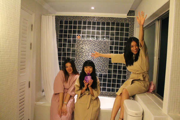 不过,谁让女人是种奇特的物种呢,洗完澡,在漂亮的套间里就像刚冲完电一样,又疯了~o(∩_∩)o 哈哈