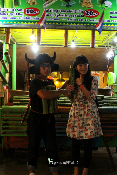 王祖蓝曾在《快乐地图》中也推荐过的泰式竹筒茶(25B),貌似有十来种草本植物口味选择,冷热皆可~超级好喝!!!!!据说全泰国只有这里有!后面才得知喝完如果再来续杯只用10B~~大哭····亲们记得续杯哇··~~竹筒还可以带回留做纪念~~超棒!