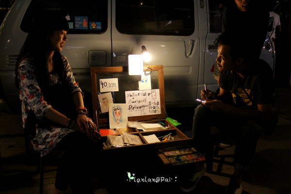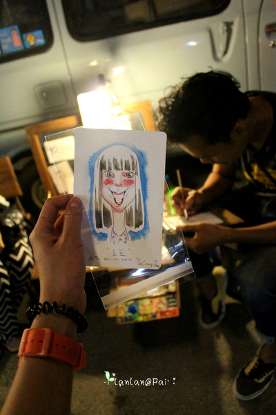 说到排队画画像··我们可是等了很久呢,40B画一副大概像6、7寸相片那么大的水墨人像,一直好奇别人眼中的自己是什么样的,也好奇卡通的自己是怎样的··每个人大概十几分钟就可以画好了··嘻嘻·