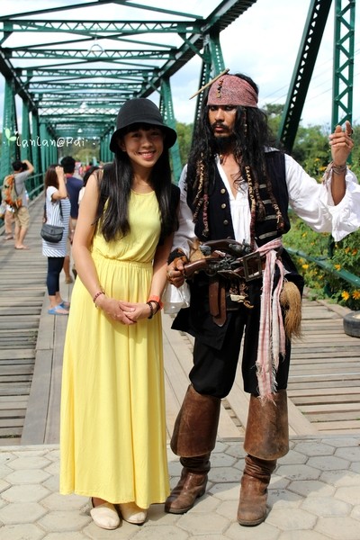 船长很会做生意呢··要买他的自制明信片才可以和他照相噢··20B~其实我们都觉得船长是个胖男人来到的,还是··发福了呢?