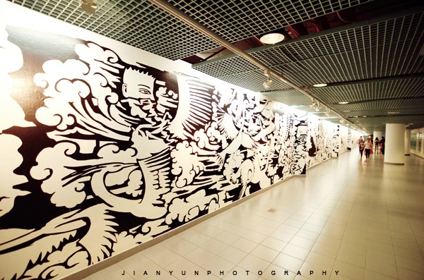 穿过地下通道来到滨海艺术中心。