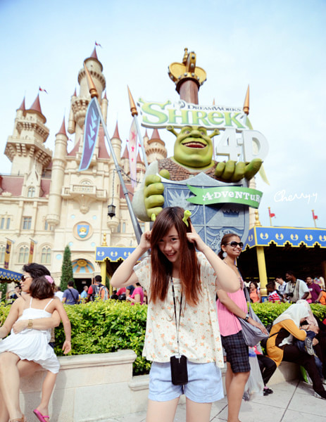 排队进入史瑞克4-D影院。