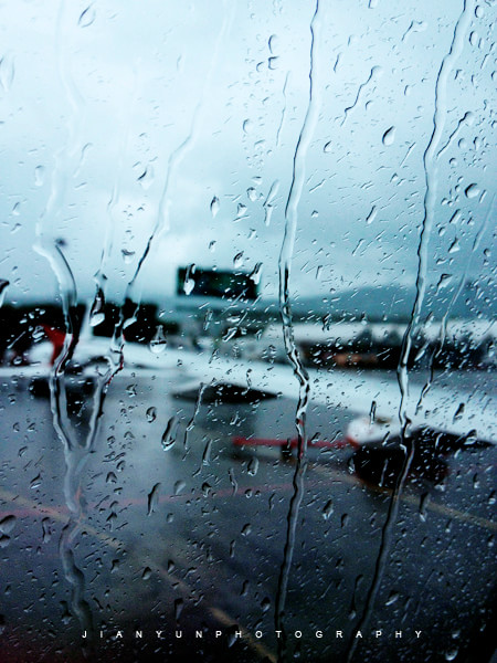 离开兰卡威时刚上飞机。停机坪上空就下起了大雨。