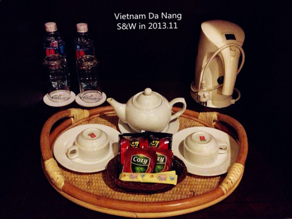 酒店每天都会赠送两瓶矿泉水水,两袋越南最好喝的咖啡G7,和两包薄荷茶。