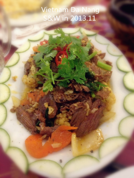 中午12点跟导游一起去了美溪沙滩旁边的餐厅吃了越南菜,味道一般也就不推荐了。