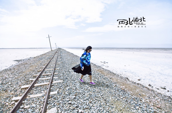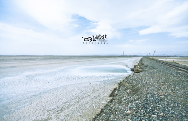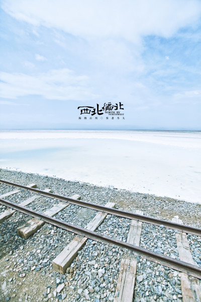 茶卡盐湖,一条运盐的铁轨通向湖的中心,两边都是白白的盐水