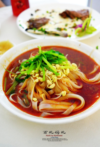 由于在沙漠中较疲惫,从丹霞返回张掖市区后我们没安排其他活动,去吃了晚饭,张掖老字号-河西罗胖子,酱骨非常好吃,配上面条。吃完把火山送回酒店,道别。。。旅途中会各种机缘遇到不同的朋友,也是旅行中的一种乐趣。