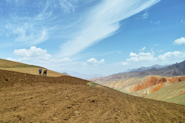 祁连卓尔山,上山途中一个游客也没碰上,遇到这两位当地大叔在耕种。