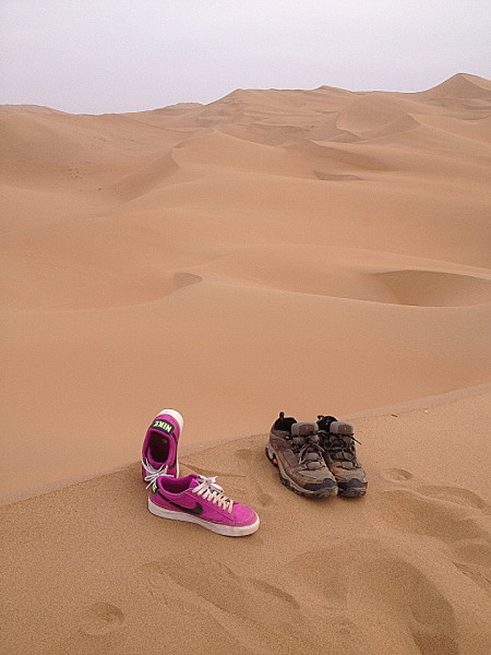 走了一会,发现脱了鞋子行走更轻松,于是把鞋子留在了沙漠中