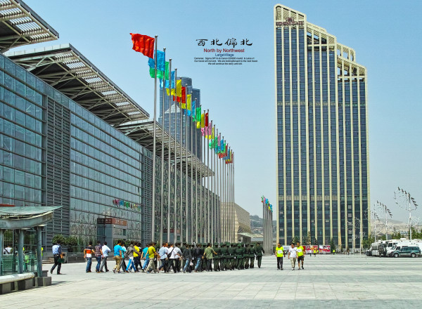远处的这幢楼就是兰州皇冠假日酒店,列队的是马拉松赛执勤的武警,