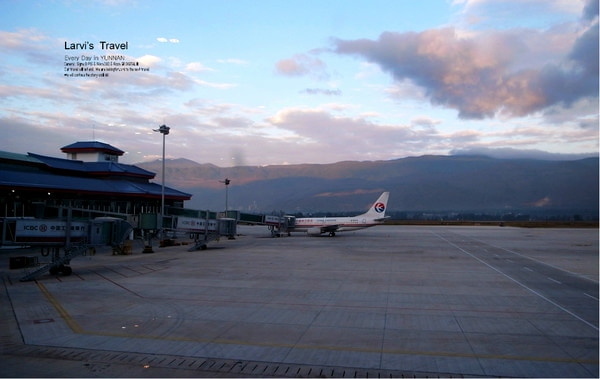 【丽江机场,不大,下飞机就能看到远山和低低的白云,充满期待】