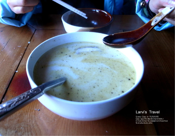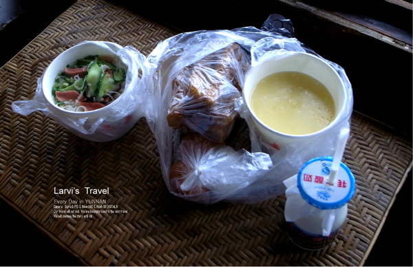 在春夏秋冬客栈出门不远,也是半山腰上有一家小餐馆,每天早上我们都会在这家小店买了早饭,借个小餐盘拿回到客栈的露台上吃,有玉米粥,油条,稀饭小混沌,玉米,等等,味道还不错。