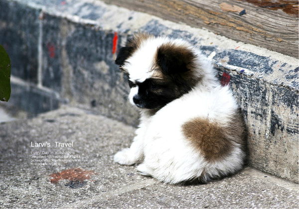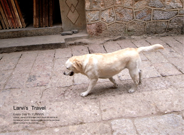 束河古镇街头,行走中的狗