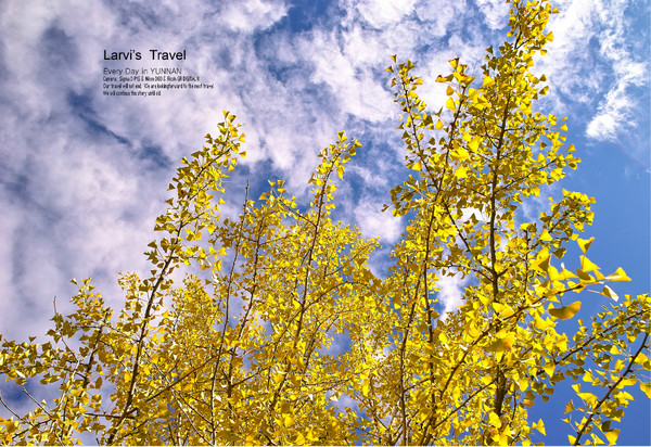 【抬头时而可以看到些金黄的银杏衬在蓝天下】