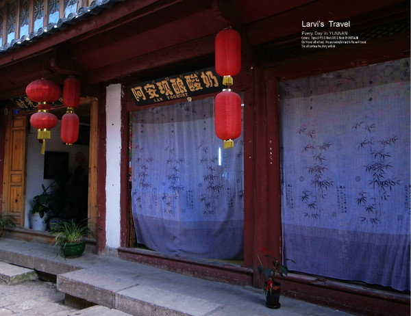 【丽江古城里有很多家阿安酸奶连锁店】