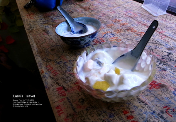 在古城里,我们最喜欢去的地方就是阿安酸奶了,味道很不错。店里氛围也很舒适,每家店都不大,店内有留言本和留言条,墙上及桌面都写满了各种寄语,给自己的,给他人的。