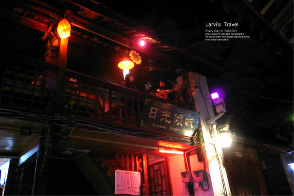 路过这个小阁楼下的时候,听到了一位女歌手很动人的歌声,阁楼下的路旁站了不少人在驻足倾听,抬头一看,叫“日光倾城“。