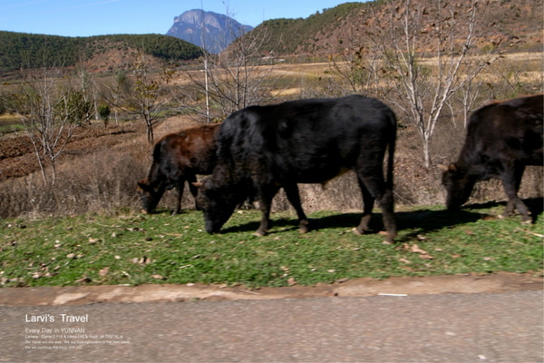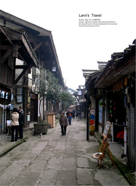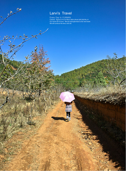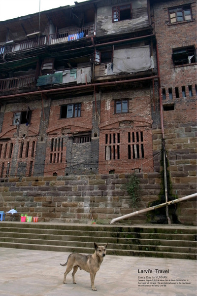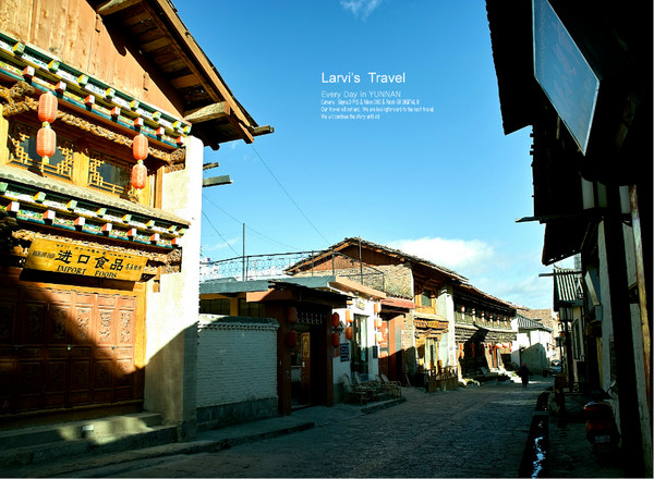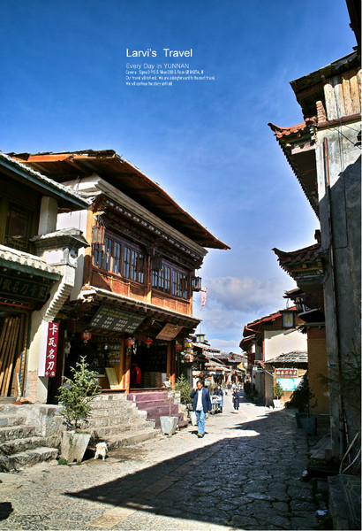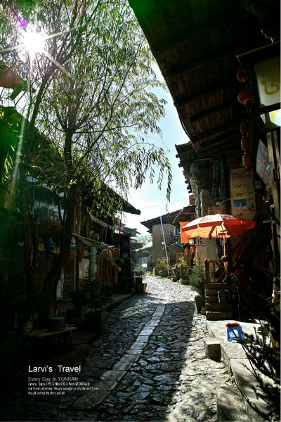 在云南,只要是晴天,天空一直都是那么的湛蓝,云朵似乎触手可及。踩得光光的路面,沿路都是2,3层的房子,路宽屋矮-尺度很宜人