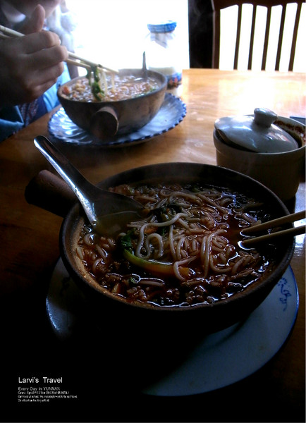 中午时分,中巴车停车休息,吃了碗面,不起眼,但味道很不错。